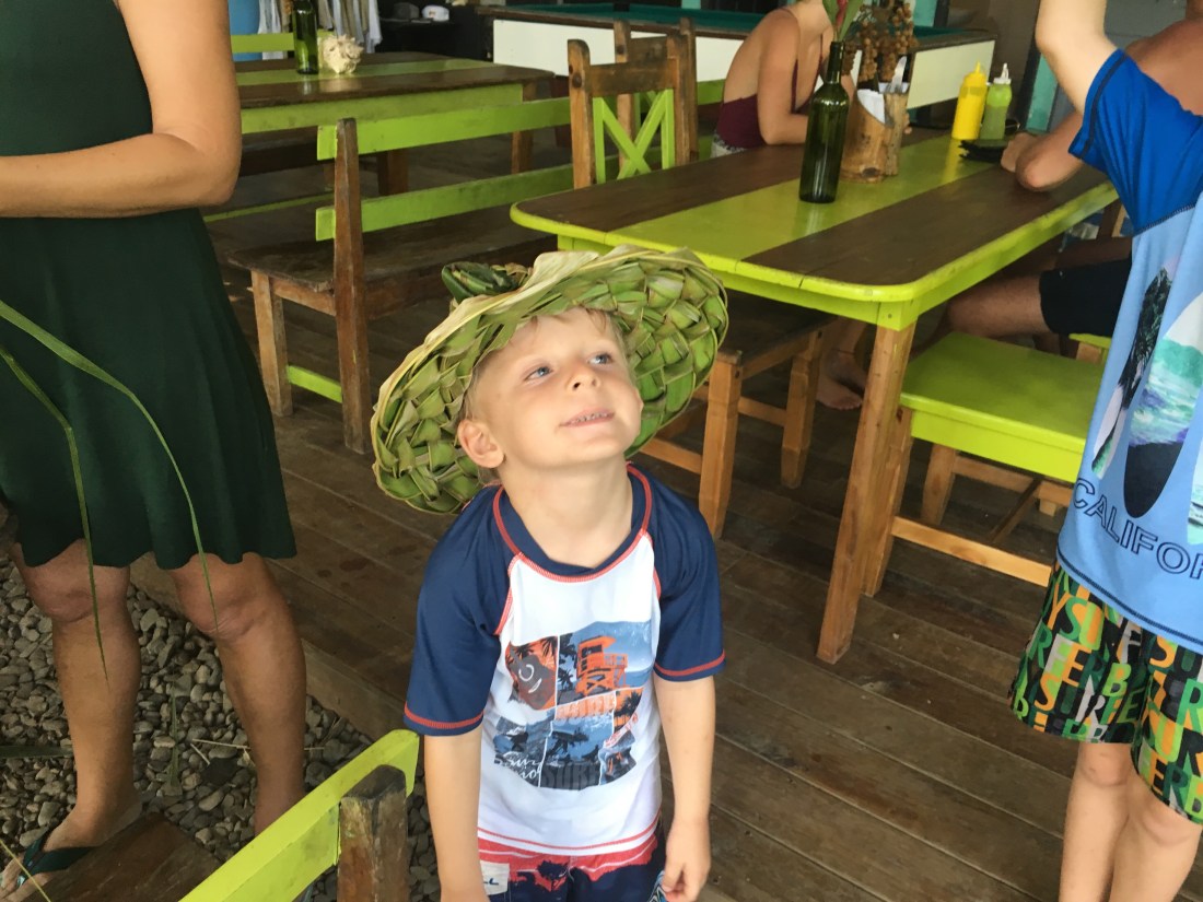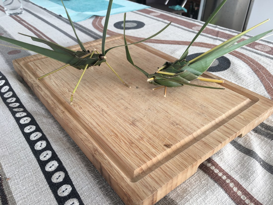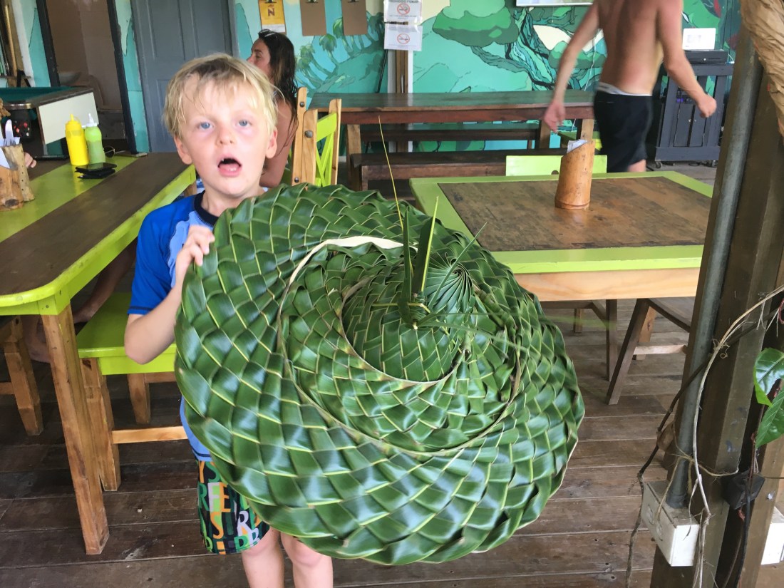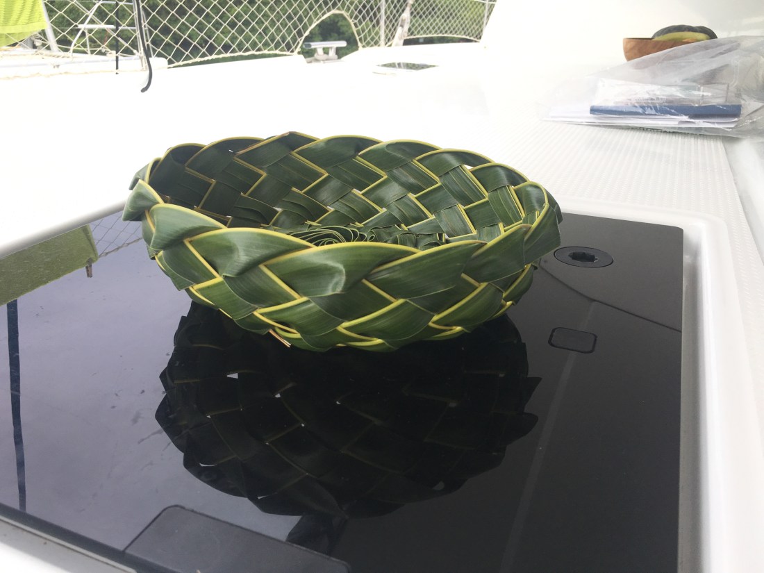 Da haben wir an einer Ecke einen kleinen Stand mit geflochtenen Palmblätterobjekten gesehen. Die Schalen sind super stabil und praktisch, und bestehen nur aus Palmblättern.