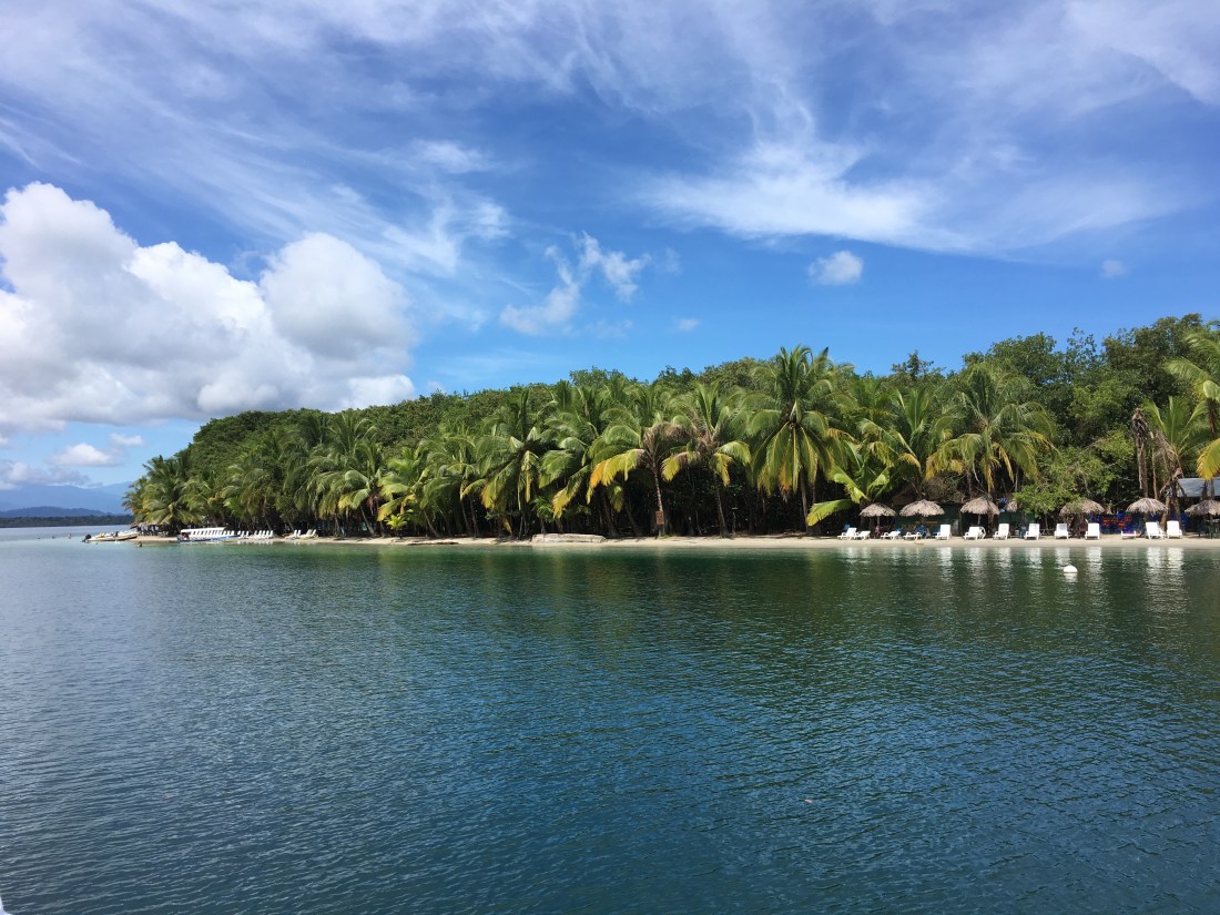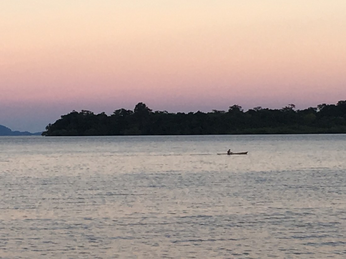 Zurück zum Ausflug mit Hindernissen. Es waren wunderbare Abende. Sanft am Anker schaukelnd, perfekte Temperatur und ein überwältigender Sternenhimmel. Die Luft war so klar, dass man Tagsüber ganz toll Panamas Berge sehen konnte und abends der Sonnenuntergang in Farbe war. Meistens ist er hier nämlich schwarz/weiß unter dichter Wolkendecke. Vor und nach dem Frühstück mal eben ins Meer zu springen, geht natürlich auch nur vor Anker und nicht in der Marina.