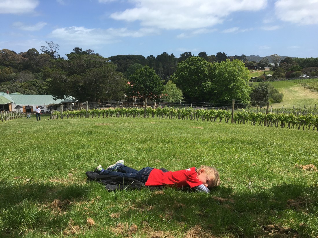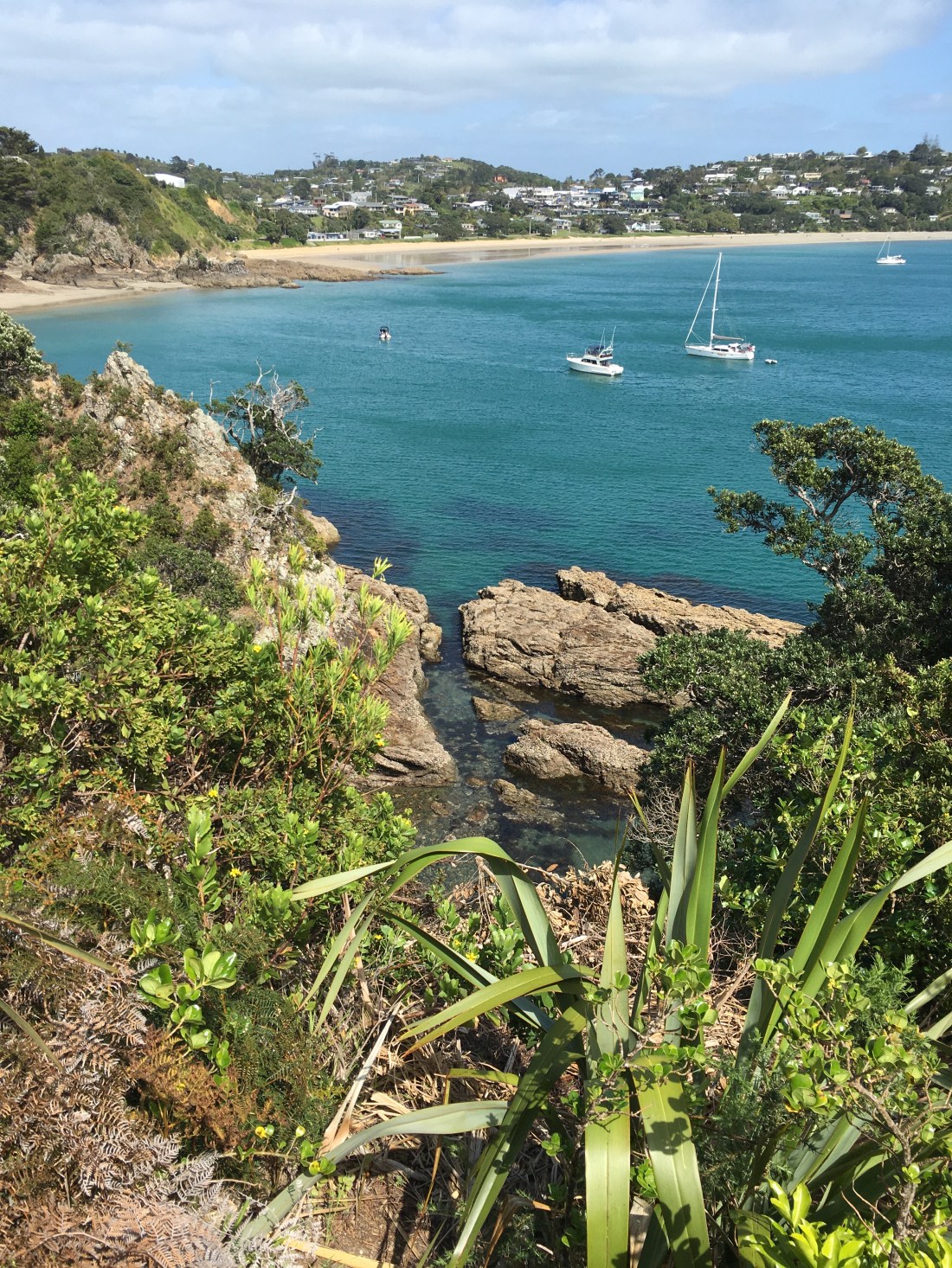 Um der Natur näher zu kommen, haben wir uns für zwei Nächte eine Bleibe auf der kleinen Insel Waiheke gesucht. Nur 35 Minuten mit der Fähre von Auckland entfernt liegt das malerische Eiland, das für uns ähnlich wirkt, wie Spiekeroog: tolle Strände, kleines Dorf und viel Platz zum Wandern. Endlich ist auch das Wetter besser. Der scharfe, kalte Wind hat nachgelassen und in der Sonne wird es ordentlich warm.