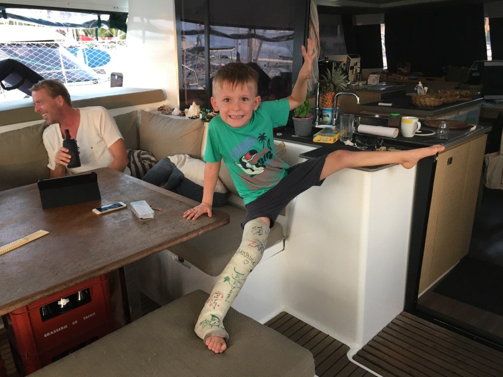 In der Marina ist es viel ruhiger geworden. Wer dringend Richtung Westen musste, konnte, mit negativem Covid-Test, ein Permit für Fiji bekommen. So sind zwei befreundete Boote in der letzten Woche ausgelaufen. Auch das Familienschiff, mit Michels Geburtstagsgästen, hat sich auf den Weg nach Hawaii gemacht, unser netter Nachbar ist zurück nach Spanien geflogen und die Brieten kreuzen in Polynesien. Ein paar Freunde sind aber noch da und wer weiß, wer als Nächstes kommt? Wir müssen auf jeden Fall noch knapp drei Wochen bleiben: heute war Kontrolle für Michels Bein und obwohl alles bestens heilt, kommt der Gips nicht vor dem 11. runter. Nun gut, dass schaffen wir auch noch. Außerdem konnten sie den Gips um ein Drittel kürzen, so dass er jetzt das Knie wieder beugen kann.