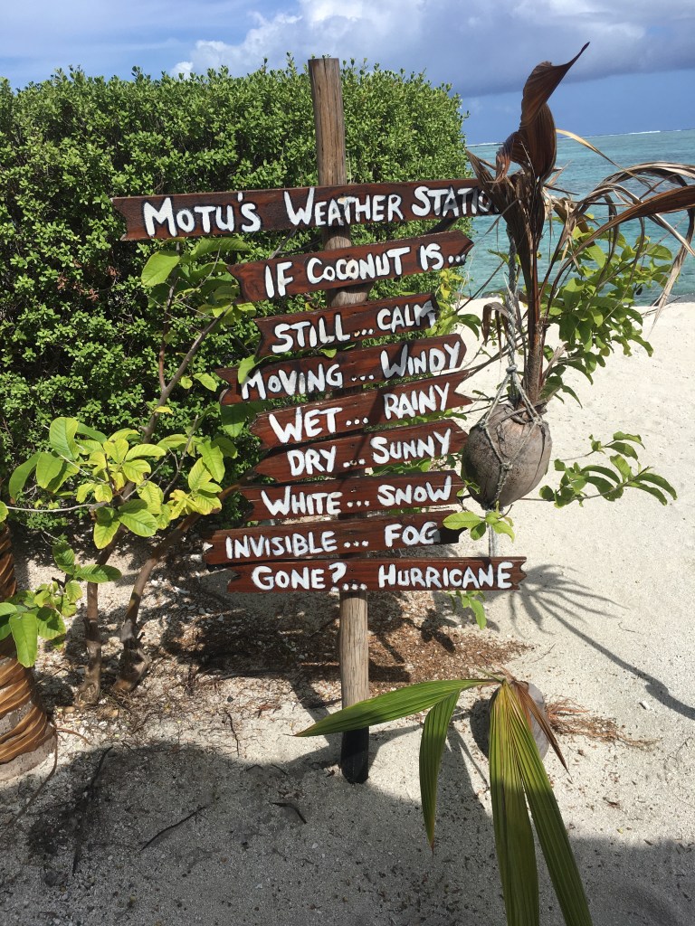 Weniger witzig sind Sprachbarrieren, wenn man zum Arzt muss. Das haben wir natürlich auch schon erlebt. Manchmal aber kann ein Arztbesuch auch ungeahnte Nettigkeiten nach sich ziehen. So geschehen, als ich hier wegen einer Halsentzündung, fachkundige Hilfe gesucht habe: Die Ärztin hatte ihre Praxis nahe dem Anleger und als ich ankam, saßen schon fünf wartende Patienten, vor der Tür auf dem Verandawartezimmer. Alles Polynesier; eine bunte Mischung mit bunten Masken und brav immer mit einem Platz Abstand (obwohl die ganze Insel nur einen positiven Fall hatte). Die älteren Damen trugen bunte Knöchellange Kleider und zwei auch Blumenkränze auf dem Kopf, als wären sie auf dem Weg zu einer Hochzeit. Sehr schön anzusehen und offensichtlich reine Geschmacksache, ob man dieses blumig-polynesische bevorzugt oder nicht. Die junge Mutter trug auf jeden Fall Shorts und Top wie ich und der arme Kerl mit dem entzündeten Bein, irgendwas Schmuddeliges. Ungewöhnlich war die Anwesenheit einer Sprechstundenhilfe. Einer jungen Frau, wie einem Gauguin-Gemälde entsprungen! Als sie meine Daten eingibt, fängt sie auf einmal an zu strahlen und erklärt mir auf französisch, dass ihr Chefin auch Alleman ist! Was für eine Fügung!