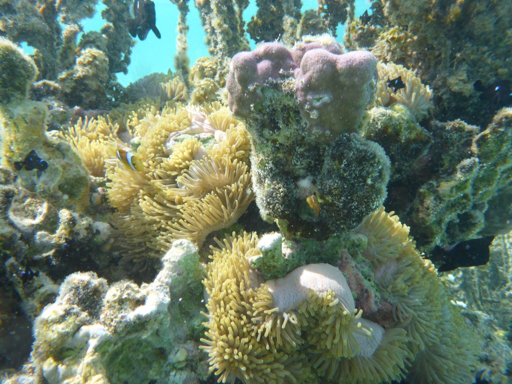 Besonders schön war der Korallengarten vor der „Vogelinsel“. Die Kinder sind im Knietiefen Wasser geschwommen, wir Großen haben Nemo und Consorten einfach beim Waten beobachtet und Dinghi hinter uns hergezogen.