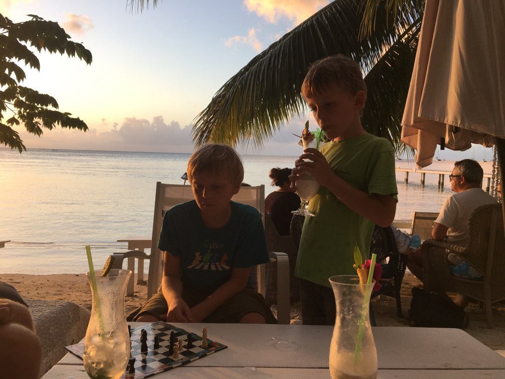 Ungefähr alle zwei Tage ein neuer Ankerplatz und die meisten davon, mit Bedacht so ausgewählt, dass ein kleines Restaurant in Dinghi Reichweite liegt. Um sowas zu finden, braucht es übrigens nicht mehr viel Pioniergeist: Wir haben hier überall Internet und gucken einfach bei GoogleMaps nach! Gerade bei den kleinen Hotels, sollte man unbedingt einen Tisch reservieren, und dann wird es manchmal lustig. Wir haben zwar beide mittlerweile einiges an Französisch gelernt, sind aber noch weit, weit davon entfernt, flüssig zu sprechen. Ich rufe also da an und frage: „Ia Orana, Bonjour, parle vous englaise?“ Auf ein energisches „No“, antworte ich dann meist mit „Ici le catamaran in front of you. Ce possible un reservation pour dinner tonight?“