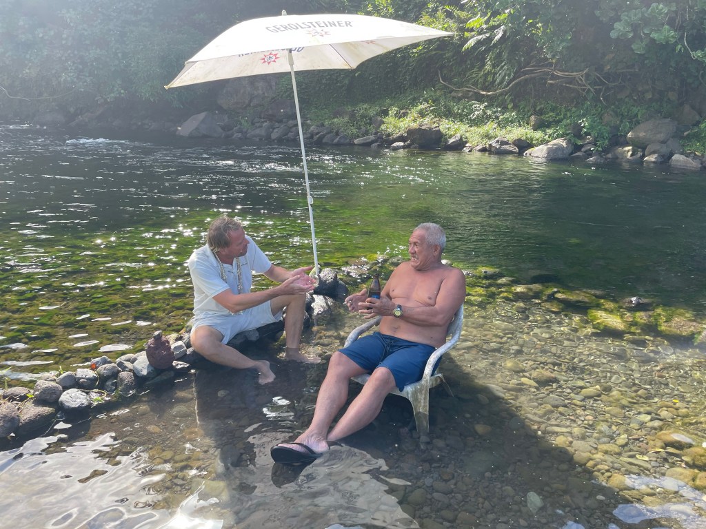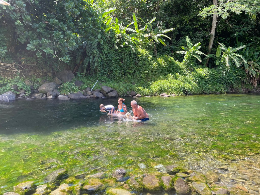 Wir liegen immer noch behaglich in der Marina Papeete. Das hat bekanntermaßen viele Annehmlichkeiten. Allerdings gehört Baden natürlich nicht dazu! Daher haben wir begeistert eine Einladung zu einem Familienausflug am Fluss angenommen. Und das kam so: