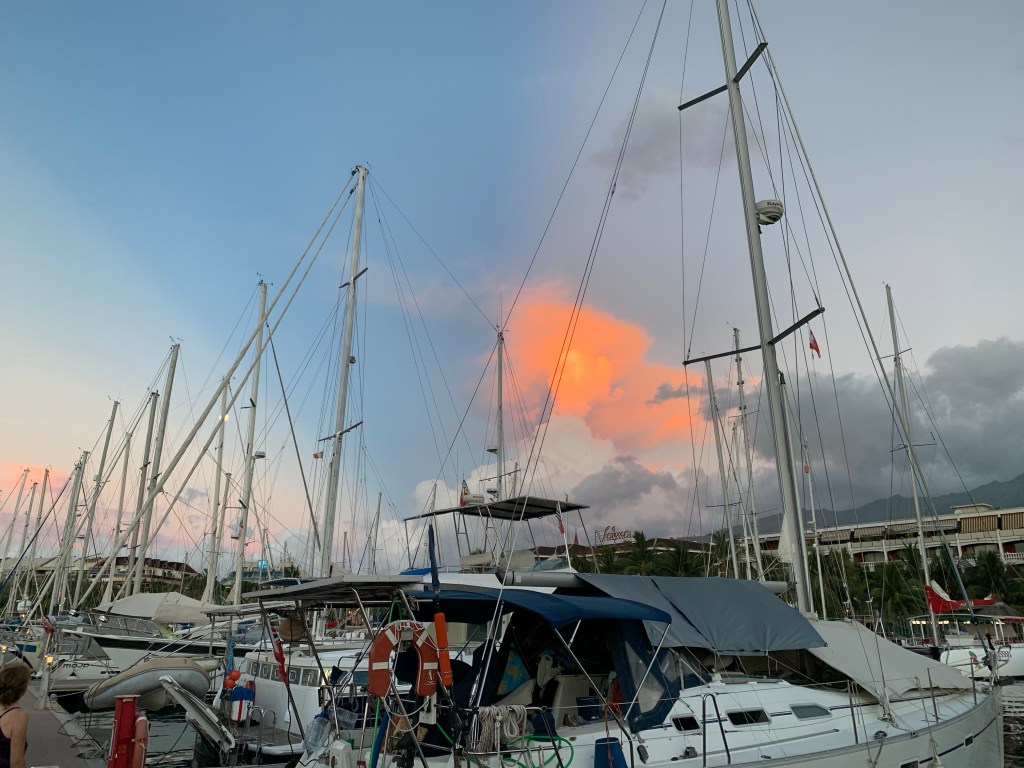 Im März tauchte plötzlich auf allen Kanälen eine Tsunamiwarnung für unsere Region auf: In den Facebook- und WhatsApp-Gruppen, von und für Segler in Polynesien, in den Nachrichten, die JD mittlerweile auf Französisch lesen kann und natürlich über Mund-zu-Mund Propaganda beim Ponton-Plausch. Das es nicht wirklich gefährlich werden würde, war ziemlich sofort klar. Allerdings war das Risiko für die Boote in der Marina anfangs schwer abzuschätzen. Etwa zwei Stunden vor dem erwarteten Eintreffen der Welle, war die Prognose 6 bis 150 cm Pegelanstieg.