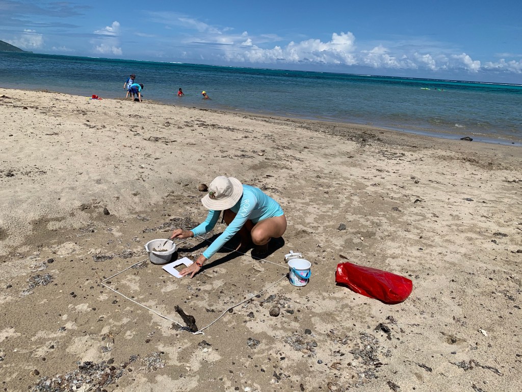 Das Ergebnis fand ich bemerkenswert! Nur ein einziges Plastikteilchen zwischen 1 und 25 mm in der ganzen Probe! Ein wirklich sehr sauberer Strand! Wir sind gespannt, ob es weiter östlich von hier, wo die Strömung mehr reinsteht, anders aussieht und werden das bei nächster Gelegenheit überprüfen!