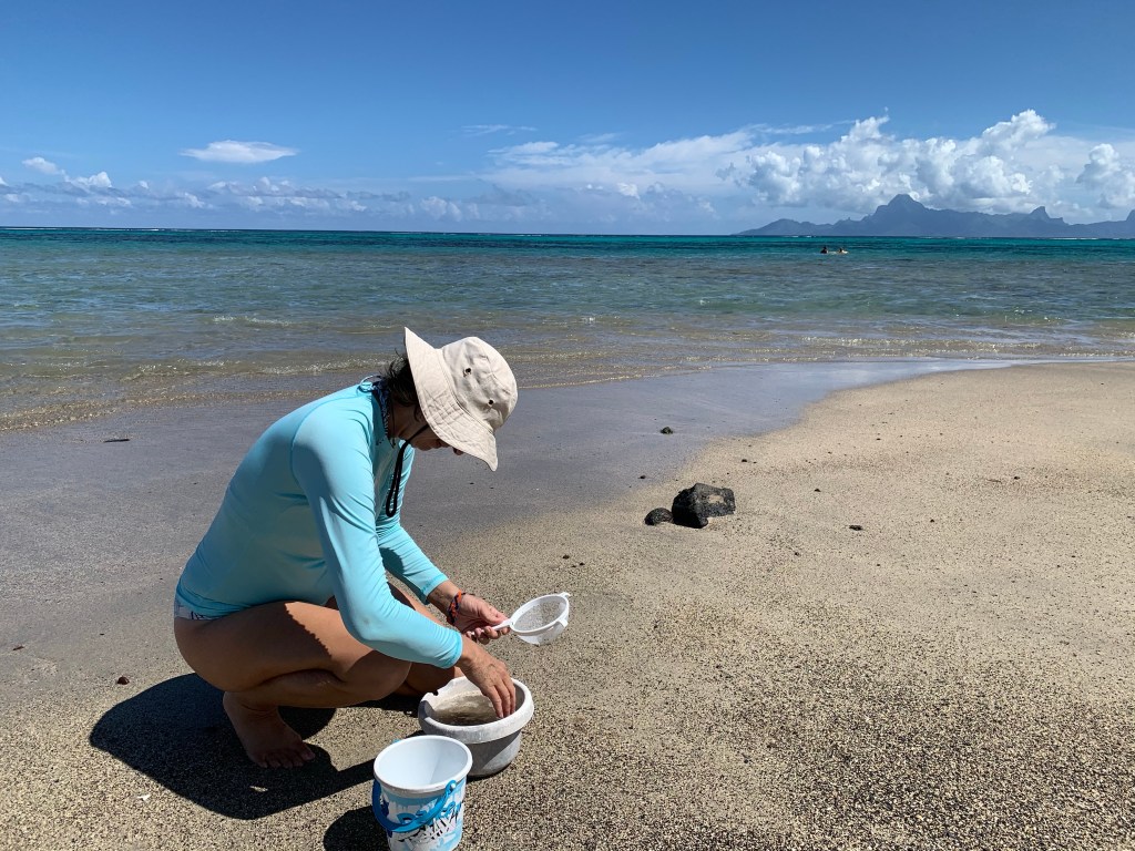 Am Strand konnte ich dann endlich meine Mikroplastik-Studie machen, von der ich schon vor zwei Wochen gehört hatten. Die Uni South Hampton und Just One Ocean, freuen sich über Jeden, der Sandproben sammeln und auswerten kann und Ihnen dann die Ergebnisse schickt. Ein halbes Stündchen habe ich glücklich, für einen guten Zweck, im Sand gewühlt und meine Proben gewaschen wie ein Goldschürfer, um sie dann zu Hause auszuwerten.
