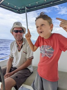Um 10 Uhr gehts los. Wir hoffen wieder auf Wind und wieder bleibt er aus. Kaum sind wir aus der Abschattung Mooreas raus, wird auch noch die See ekelig. Die halbe Crew kämpft mit leichtem bis mittlerem Unwohlsein – Spucken muss zum Glück keiner. Das Mittagskochen überlasse ich nach der Hälfte Alex, ich muss an die Luft und den Horizont angucken!