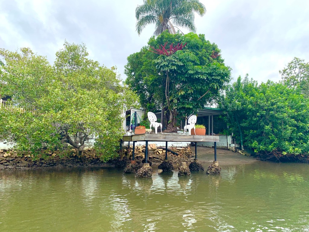 Hinter dem langen, weißen Traumstrand, der sich über viele Kilometer erstreckt, liegt das Broad Water, mit vielen, kleinen Kanälen, die um vollkommen umgekrempelte Mangroveninseln meandern. Die Inseln sind vollgestopft mit Villen in jeder architektonischen Stilrichtung, jede mit einem kleinen Anleger und einem mehr oder weniger großen Motorboot davor. Erinnert etwas an die Palmeninseln in Dubai.