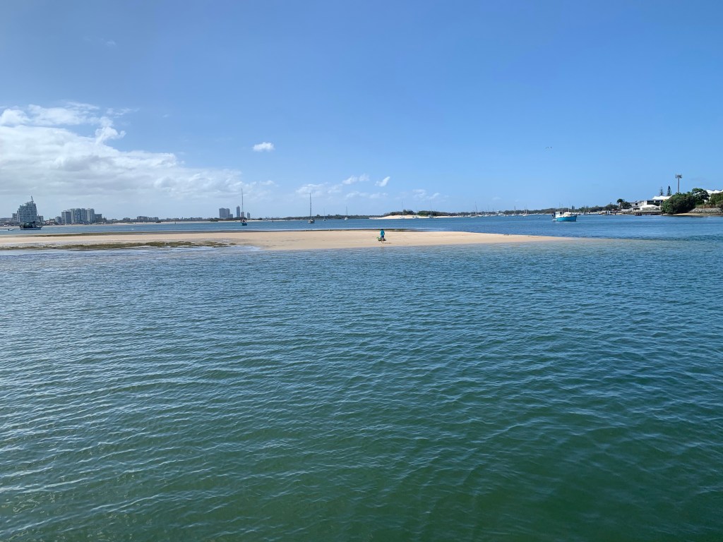 Als das Wetterfenster sich abzuzeichnen begann, haben wir sofort Aktion „Propeller putzen“ eingeleitet. Das ist hier nämlich nicht so schön wie in Polynesien und bedarf einer gewissen Planung: Bei passender Tiede und ausreichend Sonnenschein, sind wir mit JaJapami zur nahen Sandbank getuckert. Noch bei der Suche nach einem geeigneten Plätzchen, sind wir erst mal sanft auf Grund gelaufen. Man sieht ja nix in dieser trüben Brühe!
