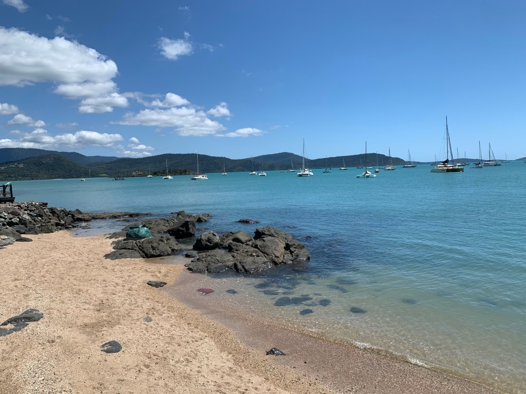 Das Ankerfeld vor Airlie ist riesig. Ein Dorf aus Booten auf türkisfarbenen, aber sehr trüben Wasser. Drei Dinghilandestellen lassen einen entspannt an Land, was wir auch jeden Tag nutzten. Vom Boot aus schwimmen, wollte so recht keiner von uns. Zu trüb war sowohl das Wasser als auch die Situation was Haie und Quallen angeht und anfangs war es auch echt noch kalt!