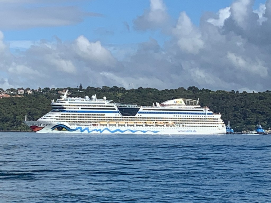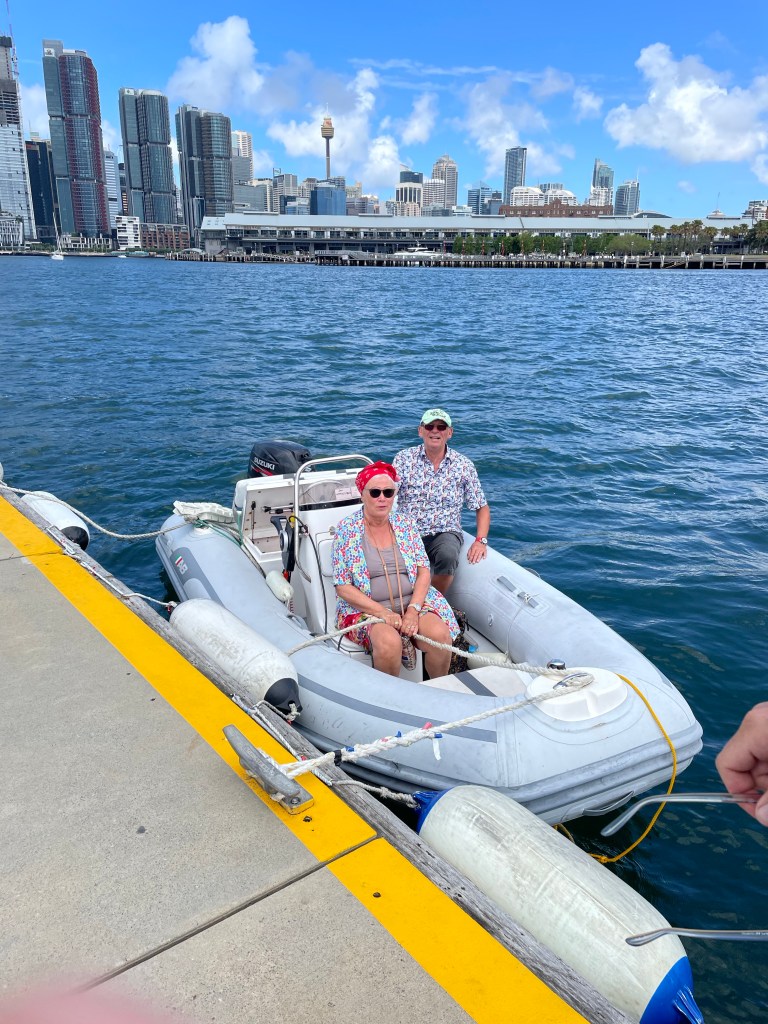 Also haben wir uns, mittels eines Googlemaps Fotos, für einen bestimmten Punkt am Darling Harbour, für ca. 13 Uhr verabredet. Und voila! Alle waren da! Das Einsteigen an diesem Public Dock ging auch ganz gut. Wir wollten noch schnell tanken und die Schiffstankstelle ist witzigerweise, gleich neben dem Dock der Aida gewesen. Also bin ich ausgestiegen und habe nach kurzem Suchen Anthony getroffen, der sich nach einem netten Pläuschchen bereiterklärt hat, unsere Verwandtschaft, am Abend, direkt durch ein gesichertes Tor auf das Kreuzfahrerterminal zu geleiten. Total nett!