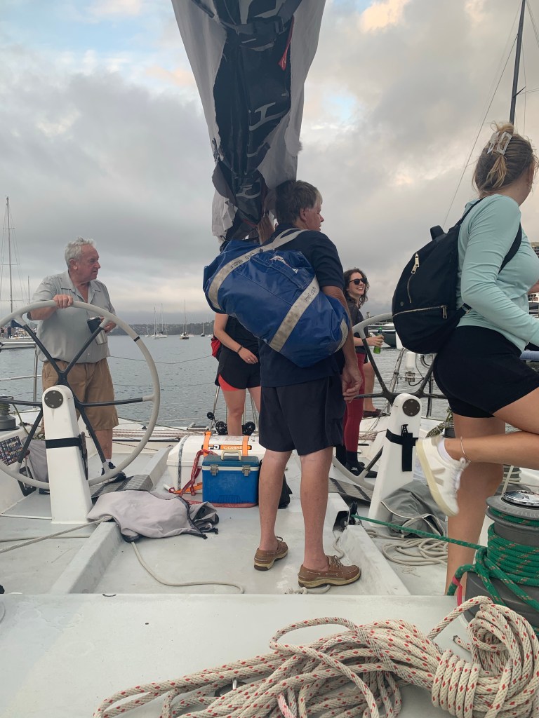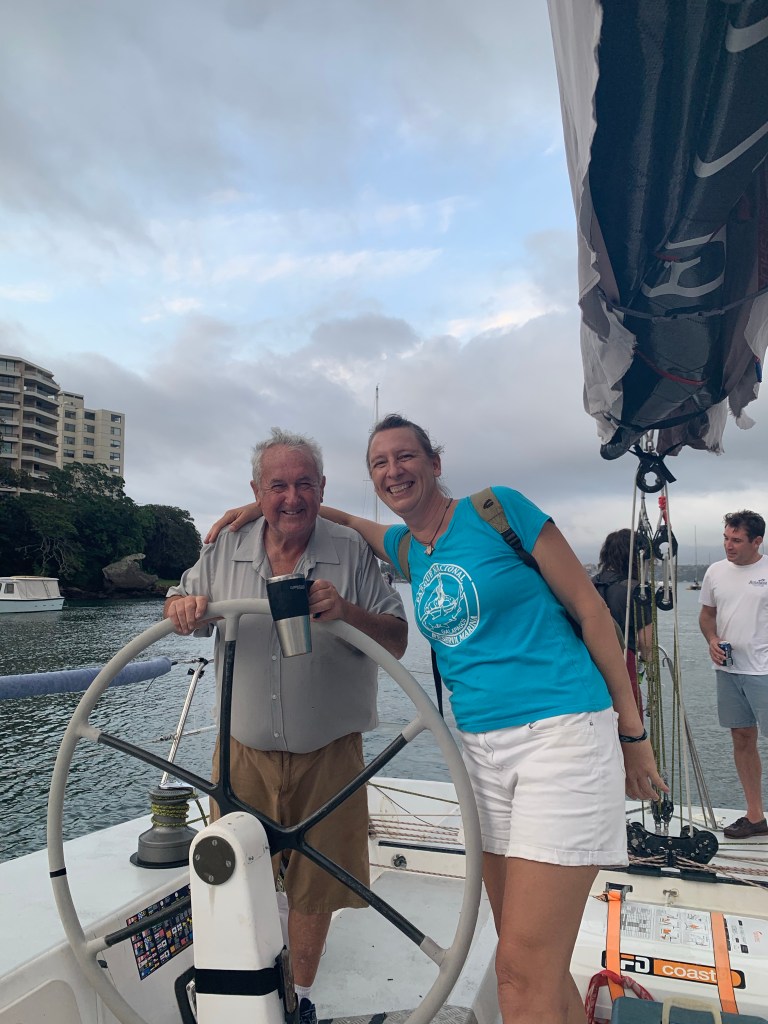 Der Skipper hat übrigens nicht geskippert, das hat der Kapitän am Steuer getan. Ich weiß also nicht so recht, warum er so genannt wurde, aber das erfahre ich vielleicht beim nächsten Mal. Die Fähigkeiten des Käptens fand ich auf jeden Fall bemerkenswert! Gunshot ist schon viele Rennen gefahren und hat auch oft gewonnen, darunter auch einmal Sydney Hobart! Das letzte im Dezember gestartete Sydney – Hobart Race müssen vier krasse Tage für die Crew an Bord gewesen sein.
