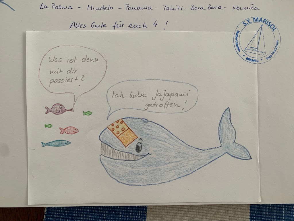 Mich wundert ja, dass das überhaupt passiert ist. Warum hat er uns wohl nicht bemerkt? In den Geschichten ist immer die Reden von Walen, die schlafend an der Oberfläche gedümpelt sind, wenn es zu einer Kollision kam. Unserer war aber eindeutig wach! Wir werden es wohl nie erfahren und hoffen auch, dass uns so etwas nie wieder passiert!