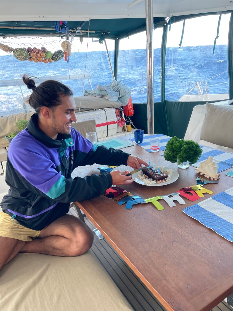 Gestern hatten wir ein Geburtstagskind an Bord! Tomas ist 29 geworden und wir haben natürlich gesungen und hatten sogar einen kleinen Schokokuchen als Überraschung. Er hat sich nicht nur darüber sehr gefreut, sondern einfach über alles bisher, auf seinem ersten Offshore-Tripp. Still und zufrieden ist auch er ein sehr angenehmer Begleiter.