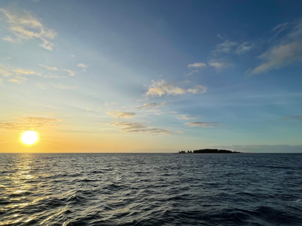 Tag 17 ist erst zur Hälfte rum, aber er war bis jetzt schon wunderbar. Nach erholsam ruhiger Nacht folgte ein warmer, klarer Morgen mit wenig Wind. Zum Frühstück tauchte eine Schule Buckelwale an Backbord querab auf. Sie waren nah genug, dass wir mit bloßem Auge Fluken und Flipper erkennen konnte und sie haben uns über eine Stunde lang begleitet! Wunderschön!