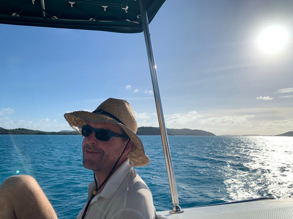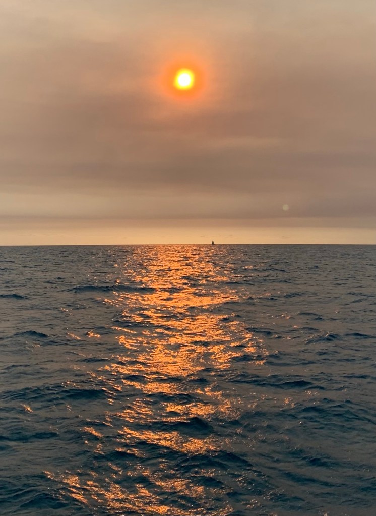 Der Abend ist dafür sehr erholsam, toller Sonnenuntergang, tolle Quiche mit frischem Salat und fast kein Seegang. Um uns rum segelt ein Kanadier auf X Wing einhand Richtung Darwin. Er und JD plaudern bestimmt ne Stunde lang am Funk und während der Nachtwachen gucken Alle immer nach Drews Lichtern. Er muss natürlich zwischendurch mal schlafen, während unsere Wache immer besetzt ist. Ist nett, hier draussen nicht alleine zu sein.
