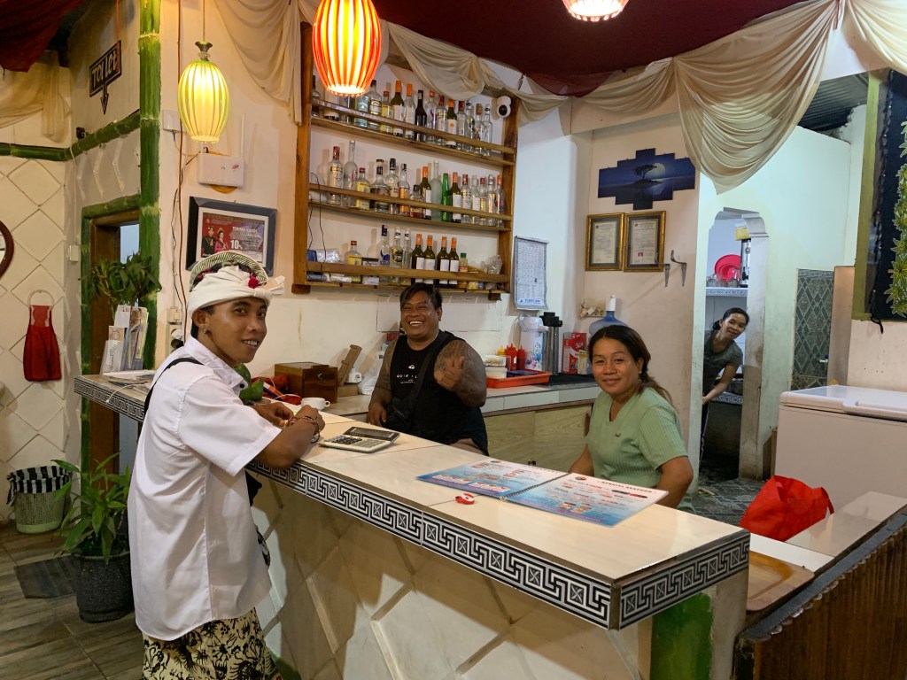 Außerdem leiht er uns sein Auto, damit wir weiteren Proviant für den Weg nach Singapur bunkern können und hilft tatkräftig, zusammen mit seinen Leuten, den ganzen Kram ins Dinghi zu verladen. Ein guter Mann, der mit dem Restaurant und einigen Booten für Delphintouren mit Touristen in dreizig Jahren schon viel erreicht hat. Wir hoffen, dass er auf unseren Rat hört und ein paar Mooring-Bojen und ein kleines Dinghidock für Segler, wie uns installiert! Das wäre ein echter Gewinn für alle Beteiligten!