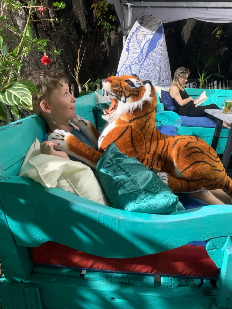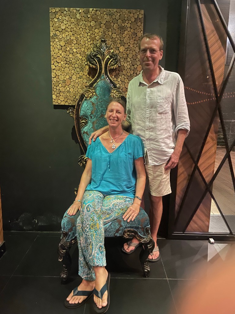 Vor Covid gab es in Telaga übrigens noch einigermaßen viel Leben, Läden und Restaurants. Mittlerweile steht das meiste leer und wirkt verwahrlost. Auf der kleinen, künstlichen Insel finden wir ein Freizeitparadies mit Bars, Statuen und Hängematten fast völlig verweist vor. Wir sind die einzigen Gäste des Restaurants und machen den kleinen Ausflug hierher gleich an zwei Abenden.