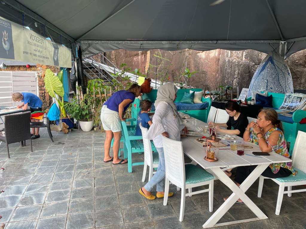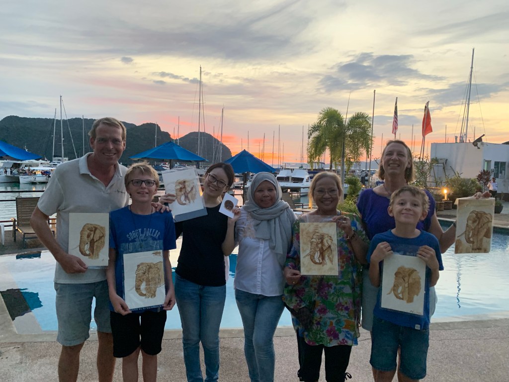 Wir lernen verschiedenste Leute kennen und machen einen tollen Workshop zu Kaffeemalerei bei einer malayischen Künstlerin mit. Zu meiner Verblüffung ist das ein echtes Highlight für die Familie, JD war davon schon vorher überzeugt, und die Bilder sind ganz toll geworden!
