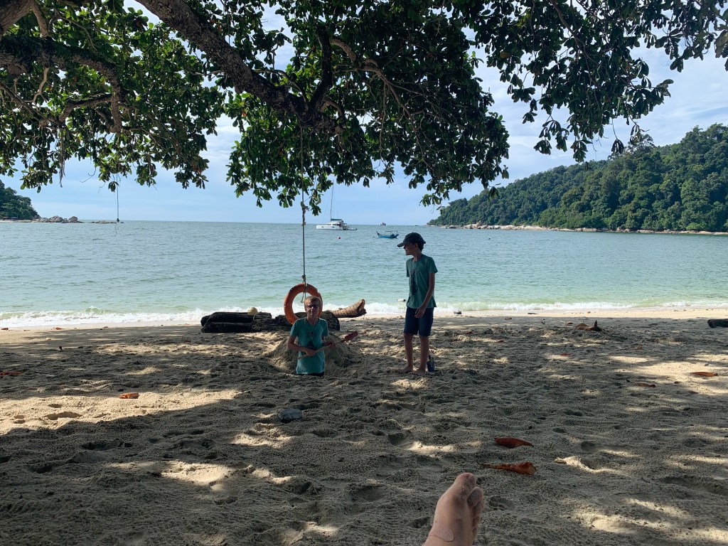Mit dem Langkawi Royal Yacht Club haben wir unser nächstes Etappenziel erreicht. Langkawi ist die große Insel vor Thailands Grenze und auch ein sehr schönes Fleckchen Erde. Auch hier schwimmen Warane in der Marina und es soll auch Otter geben, die uns aber leider nicht begegnen. Die Marina ist gut, wir können alles Salz abschütteln (die Jungs vor allem im Pool), relaxen und Thailand planen. Die Tage vergehen wie im Flug, während wir mal in die Stadt fahren, zu Fuß unterwegs sind, oder in der Marina rumwuseln.