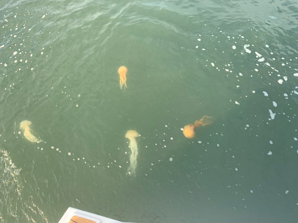 Das Wasser ist meist schmutzig braun mit vielen Quallen und voller Fischer, Netze und Lobsterfallen. Man muss ständig aufpassen, nicht irgendwo reinzufahren und auf Nachtfahrten haben wir daher verzichtet.