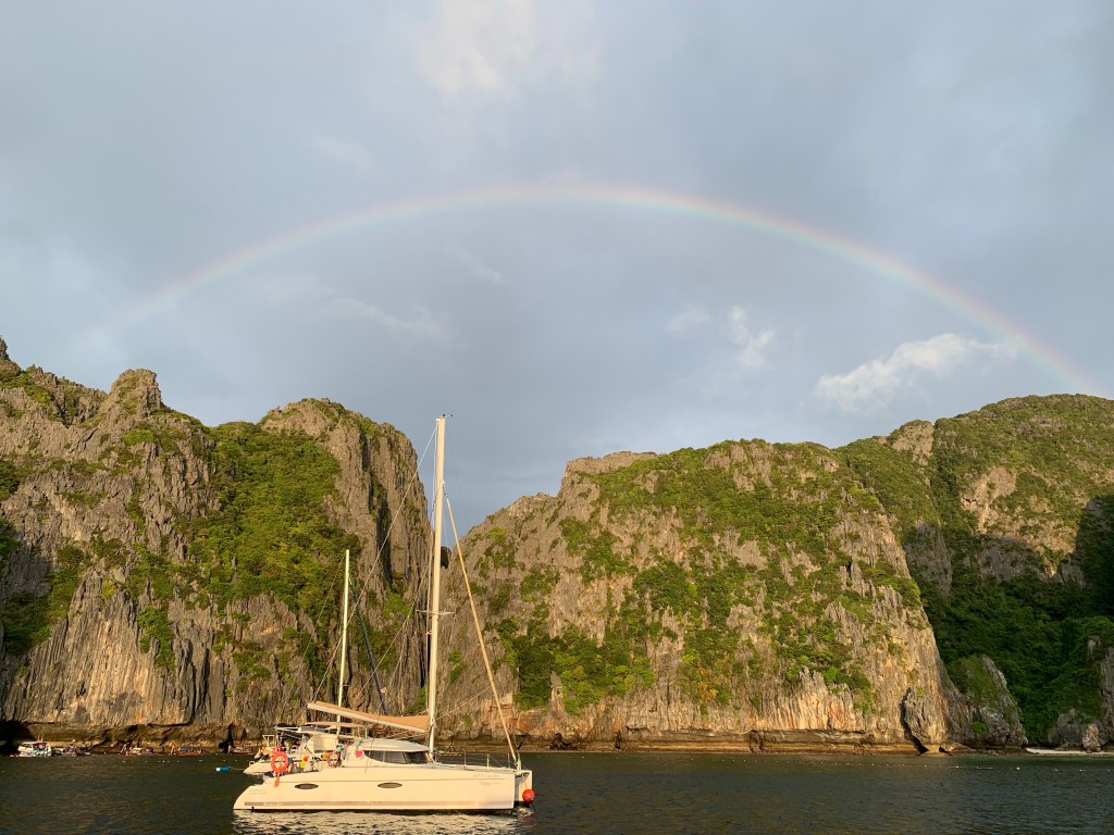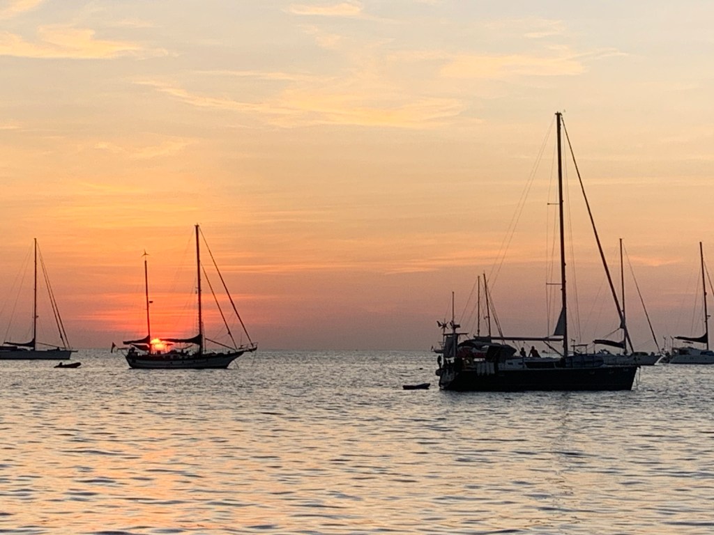 The Tagadela port, to the northwest of the Langkawi island, bids us farewell with a magical dinner on its small ghost island. The next day, after navigating in circles to manage the country’s check-out, we set sail to complete the final stretch of the Malacca Strait and venture into the Andaman Sea. In just over five miles from leaving the port, we would cross the line that, according to the nautical chart, separates the waters of Malaysia from those of Thailand.